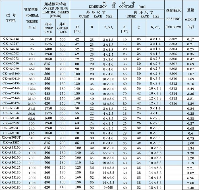 产品名称:单向超越离合器-CK-A