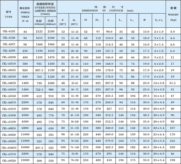 产品名称:单向超越离合器-CKL-A