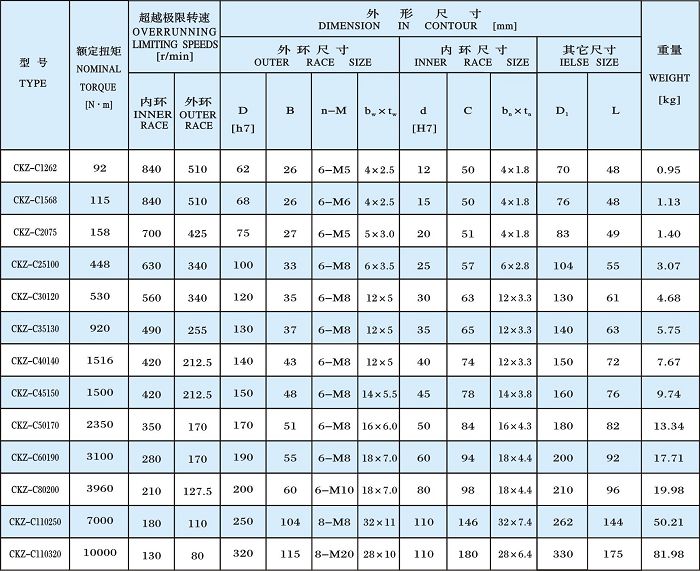 产品名称:单向超越离合器-CKZ-C