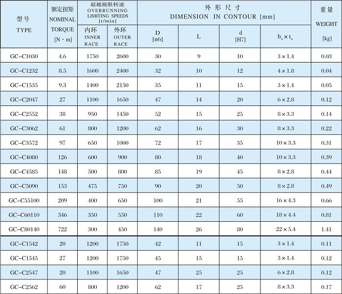 产品名称:单向超越离合器-GC-C