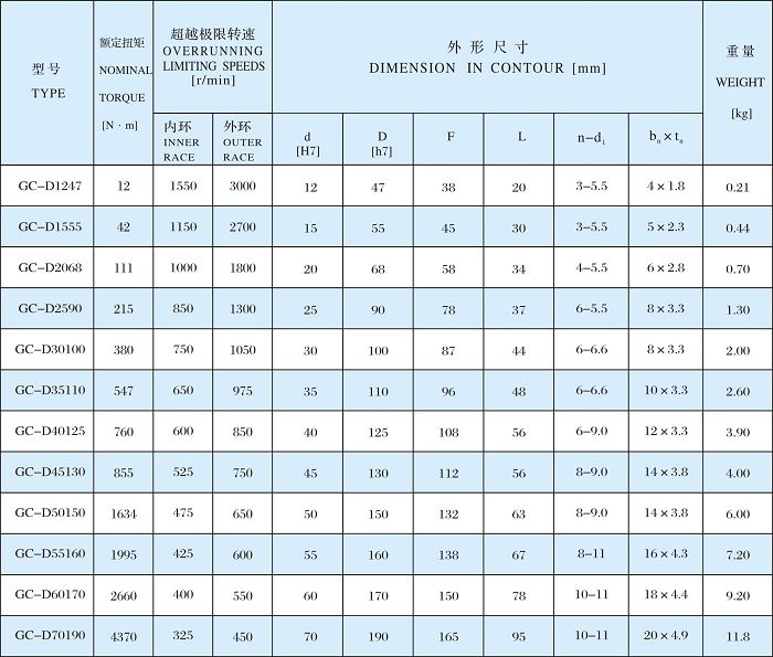 产品名称:单向超越离合器-GC-D