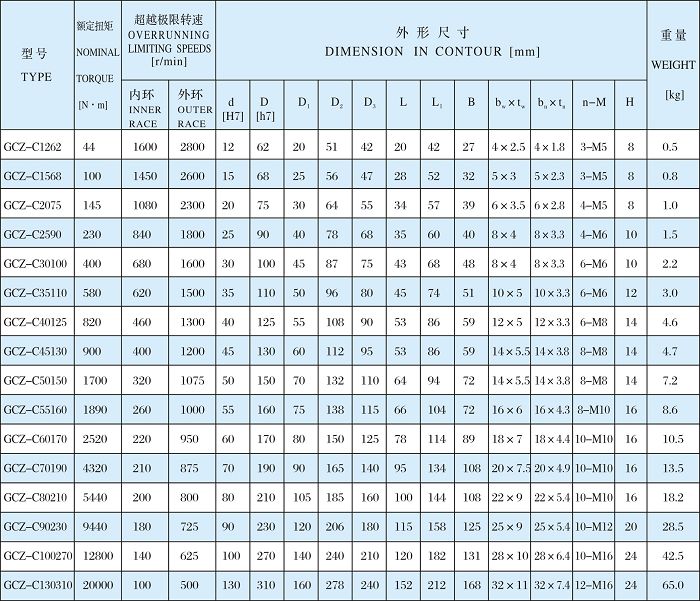 产品名称:单向超越离合器-GCZ-C